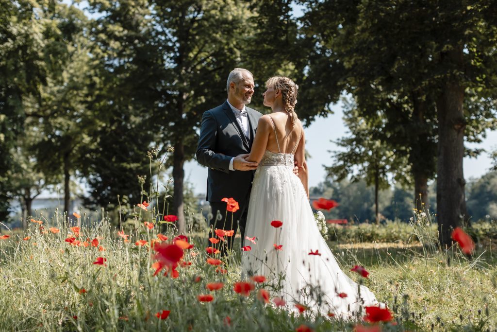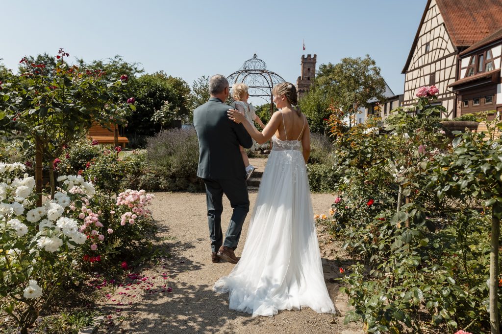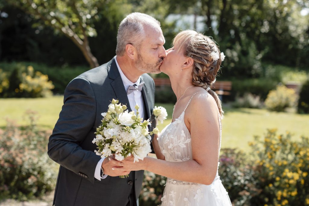 Eine Hochzeit in meiner Wahlheimat im schönen Franken in der Römerstadt Obernburg am Main. An einem sonnigen Sommertag lässt es sich ganz schön heiraten. Das Fotoshooting fand im Rosengarten und der angrenzenden Mainwiese statt.