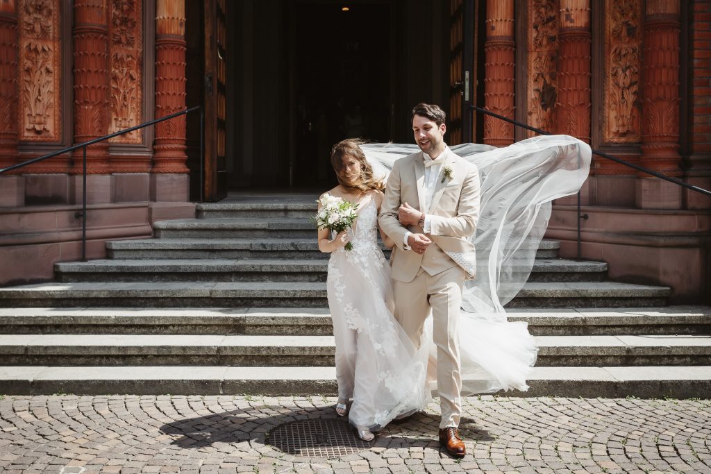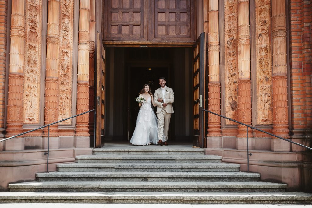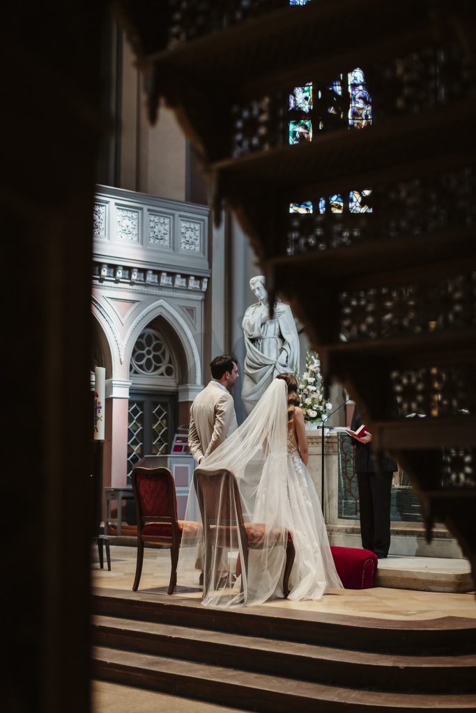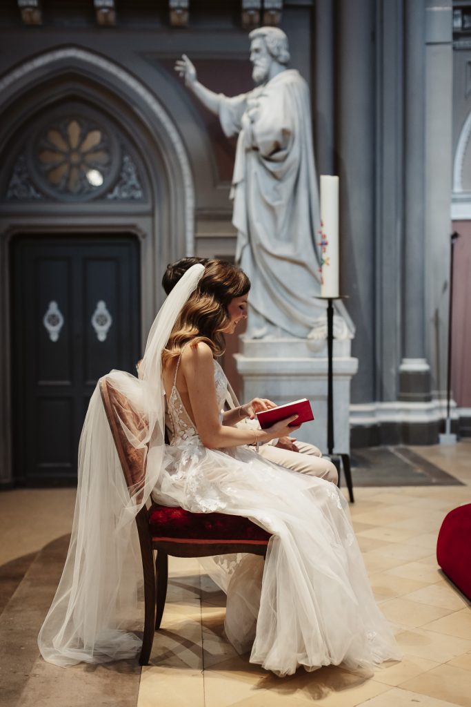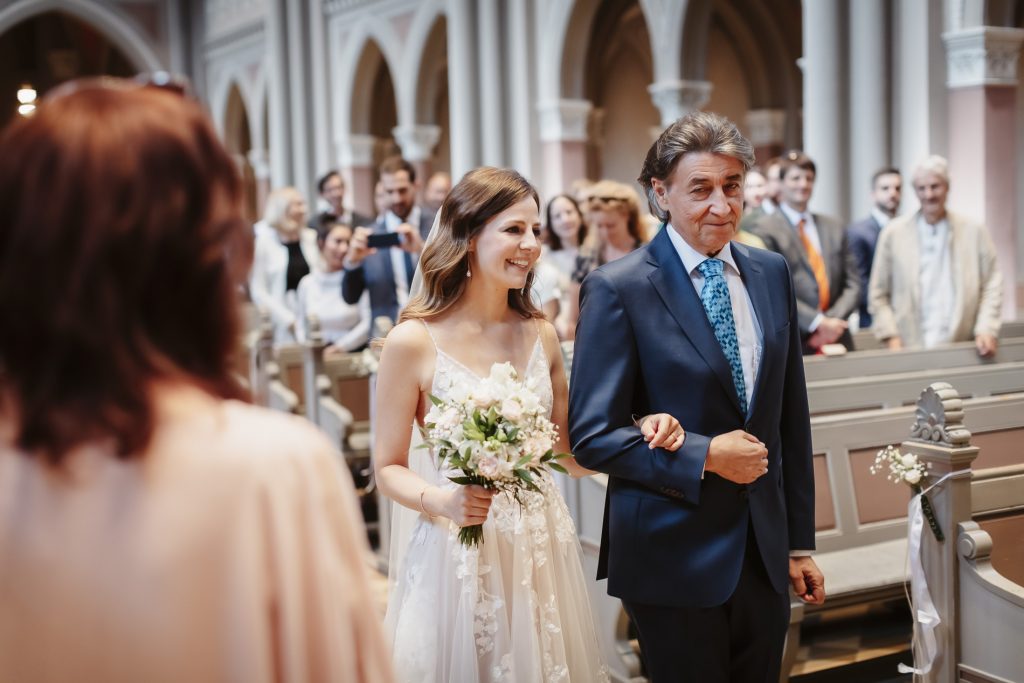 Schon beim Betreten der Marktkirche spürt man eine besondere Magie. Das sanfte Licht, das durch die bunten Glasfenster fällt, taucht den Raum in ein warmes Leuchten. Hier beginnt für das Brautpaar ein neues Kapitel – voller Hoffnung, Freude und gemeinsamer Träume. Während die Braut mit einem Herz voller Aufregung den Gang mit Ihrem Vater entlang schreitet, halte ich jeden Moment fest: das leise Zittern ihrer Hände, das strahlende Lächeln des Bräutigams.