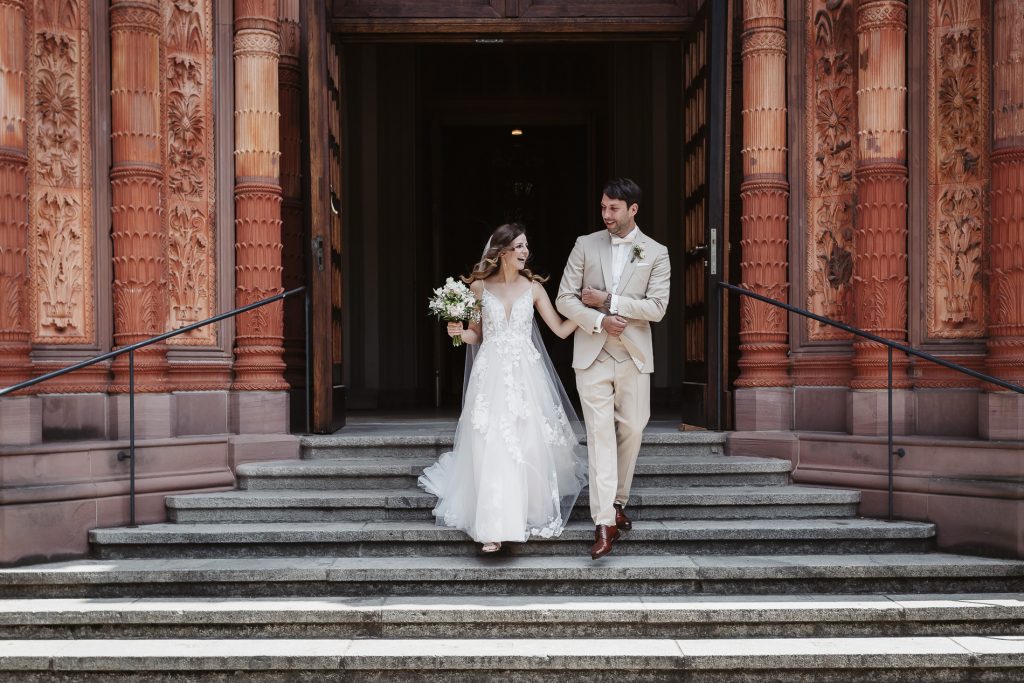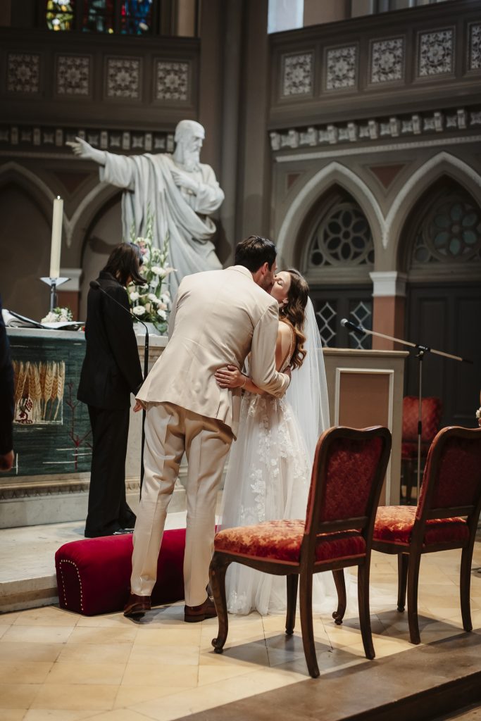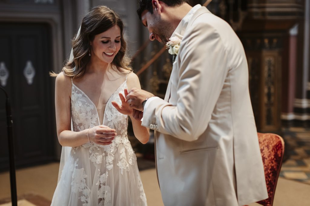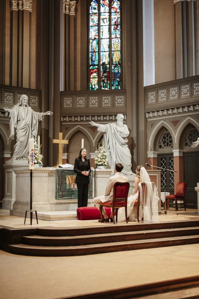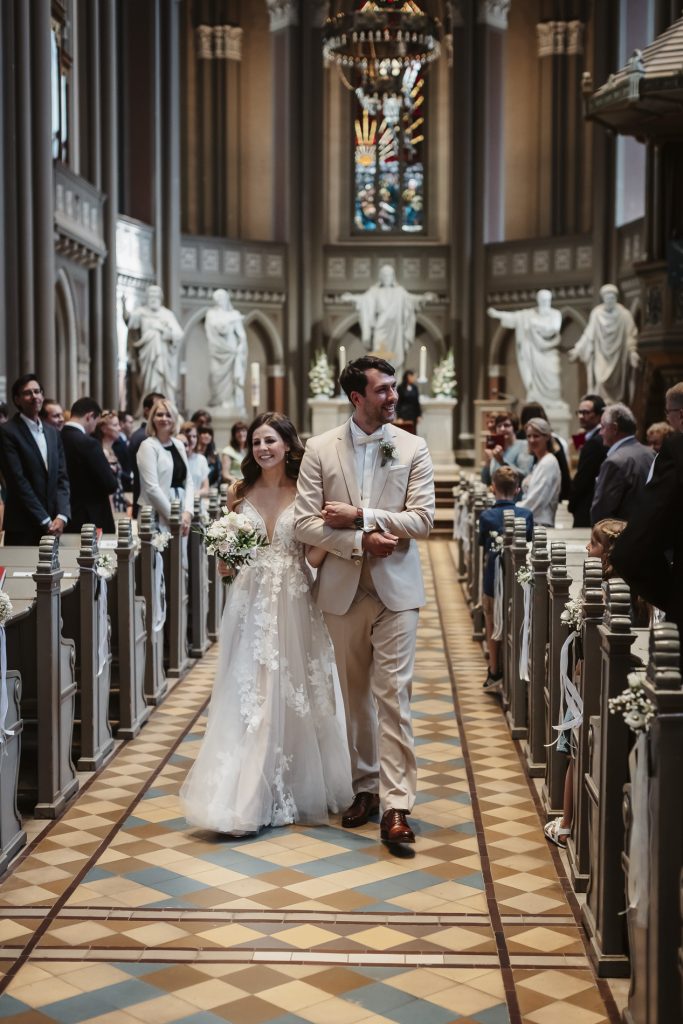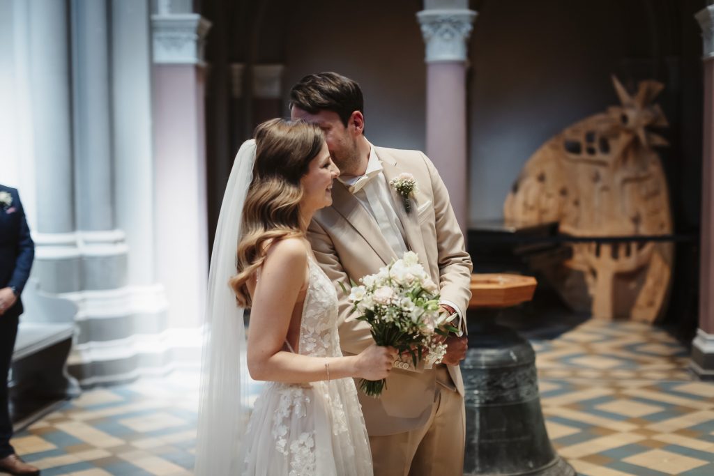 Schon beim Betreten der Marktkirche spürt man eine besondere Magie. Das sanfte Licht, das durch die bunten Glasfenster fällt, taucht den Raum in ein warmes Leuchten. Hier beginnt für das Brautpaar ein neues Kapitel – voller Hoffnung, Freude und gemeinsamer Träume. Während die Braut mit einem Herz voller Aufregung den Gang mit Ihrem Vater entlang schreitet, halte ich jeden Moment fest: das leise Zittern ihrer Hände, das strahlende Lächeln des Bräutigams.