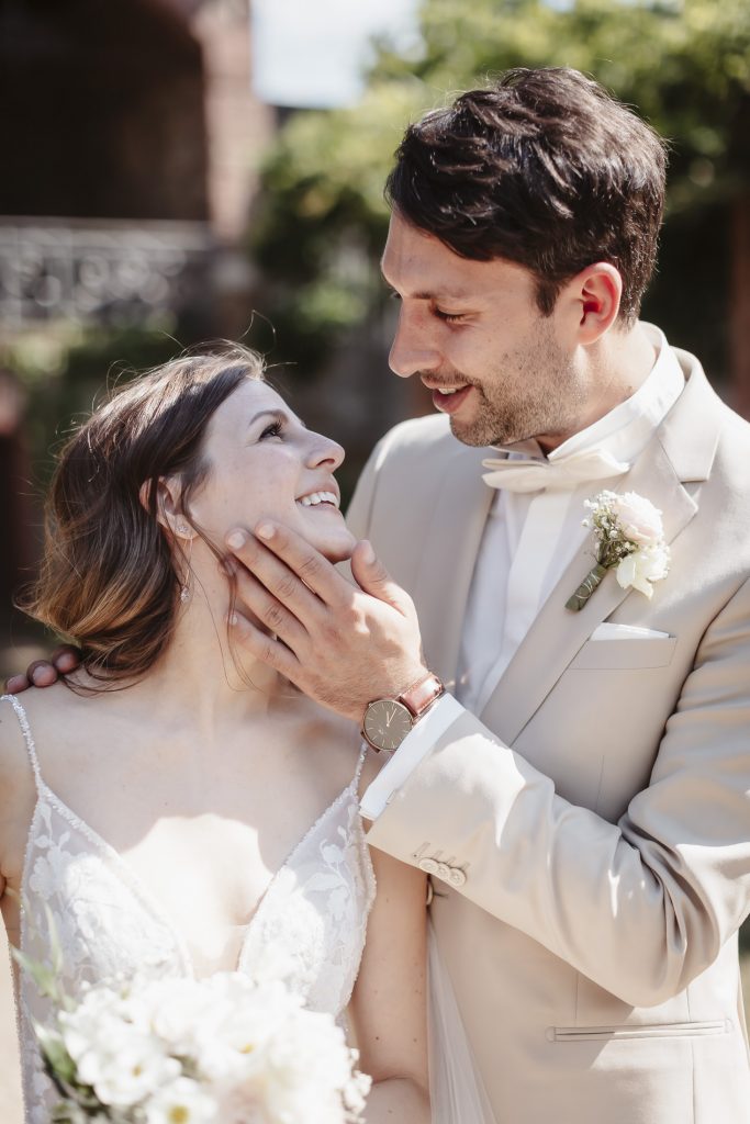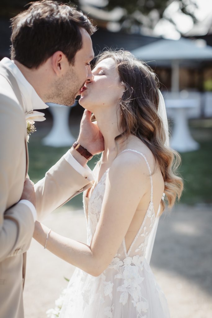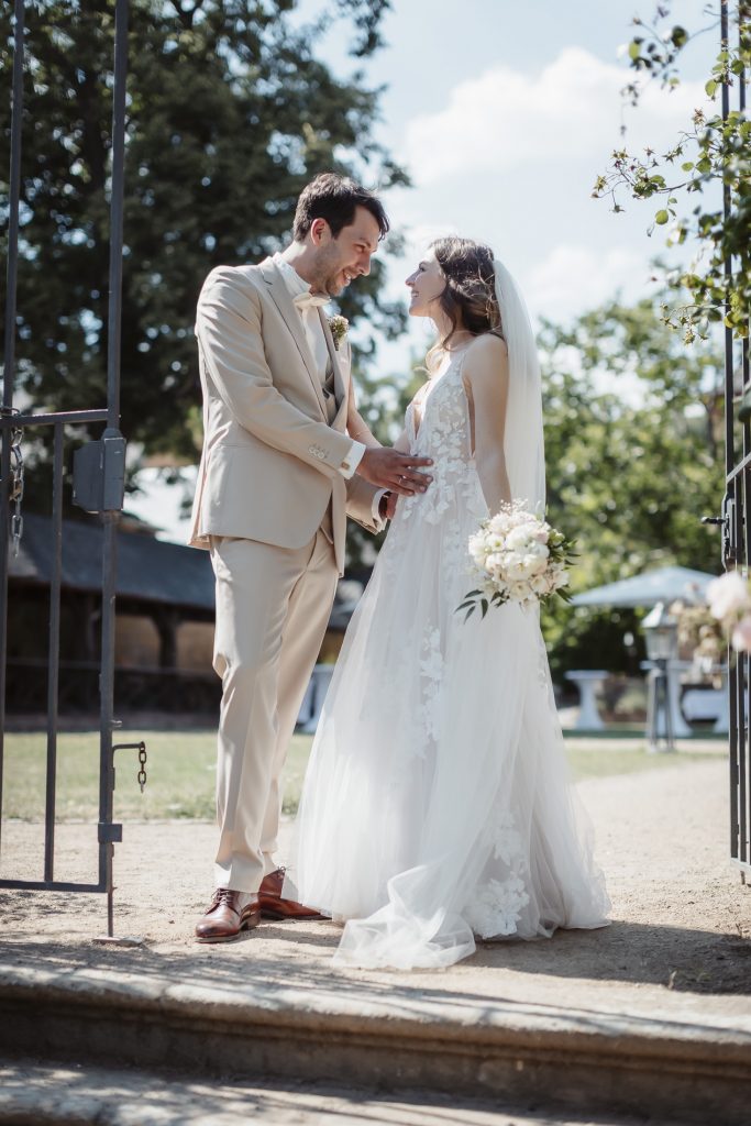 Nach der emotionale Trauung in der Wiesbadener Marktkirche fuhren wir weiter zur traumhafte Lokation auf Schloss Vollrads – einem Ort voller Geschichte, Charme und Romantik. Die Sonne strahlte über den sanften Weinbergen, während das Brautpaar inmitten dieser malerischen Kulisse ihre Gäste begrüßte und den Beginn ihres gemeinsamen Lebens feierte.