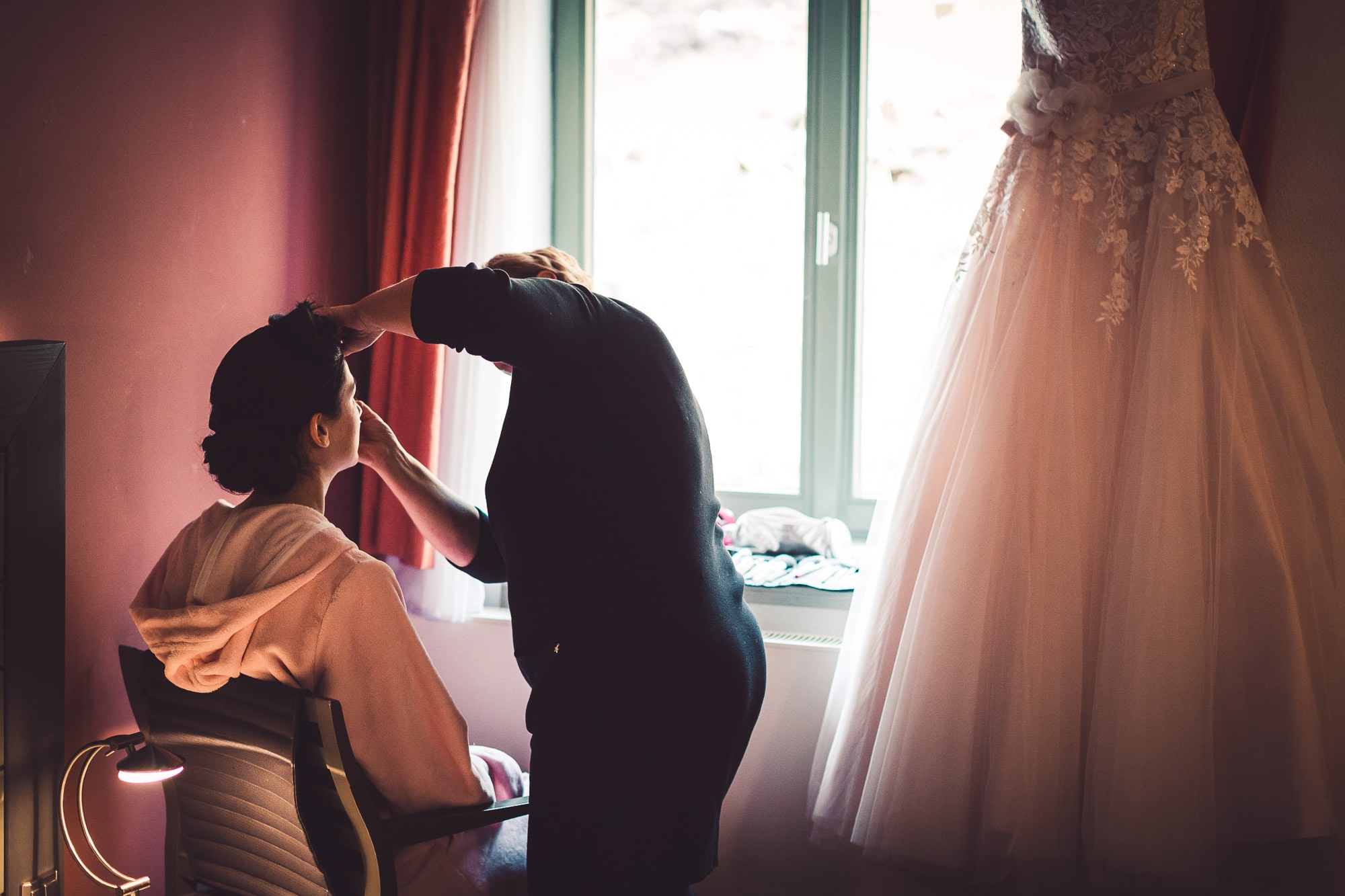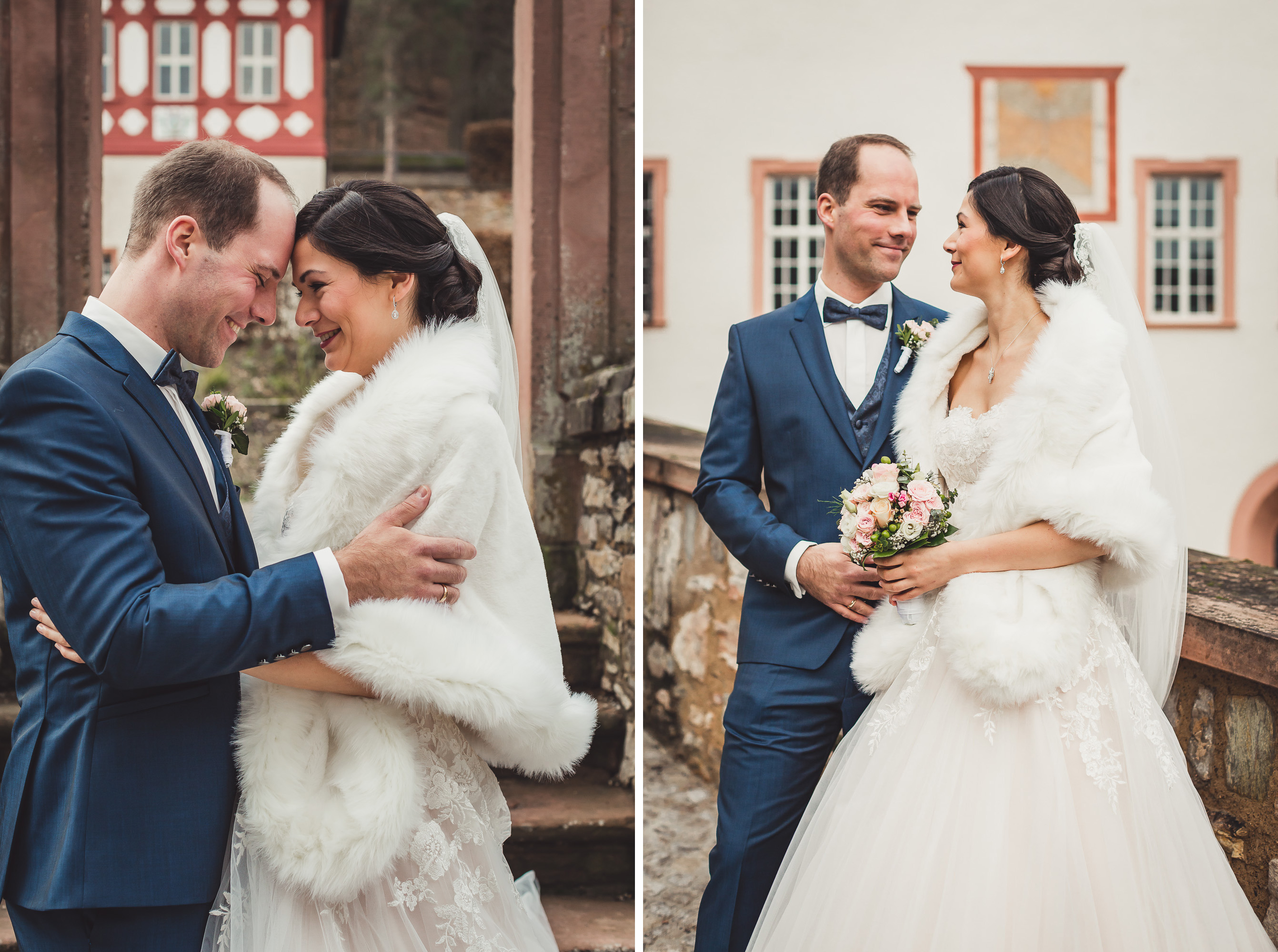 Bei dieser Hochzeit haben alle Punkte des Tages auf Kloster Eberbach stattgefunden. Gestartet haben wir mit einem Getting Ready im angrenzenden Hotel. Die Braut hat mich dabei mit einen wunderschönen Styling im Winter überrascht – sogar ein wenig an Schneewittchen erinnert. Somit mehr als passend für die Wintersaison.
