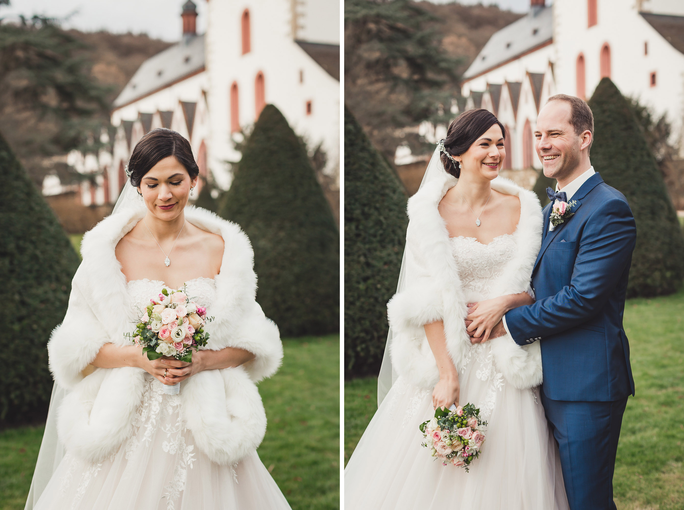Beim anschließenden Shooting auf dem Gelände vom Kloster hatten wir den Garten und die Basilika ganz für uns allein – Momente die man so im Sommer sonst nicht hat. Wir konnten daher trotz des eisigen Wetters wunderschöne Fotos im Außengelände und in den Räumlichkeiten machen.