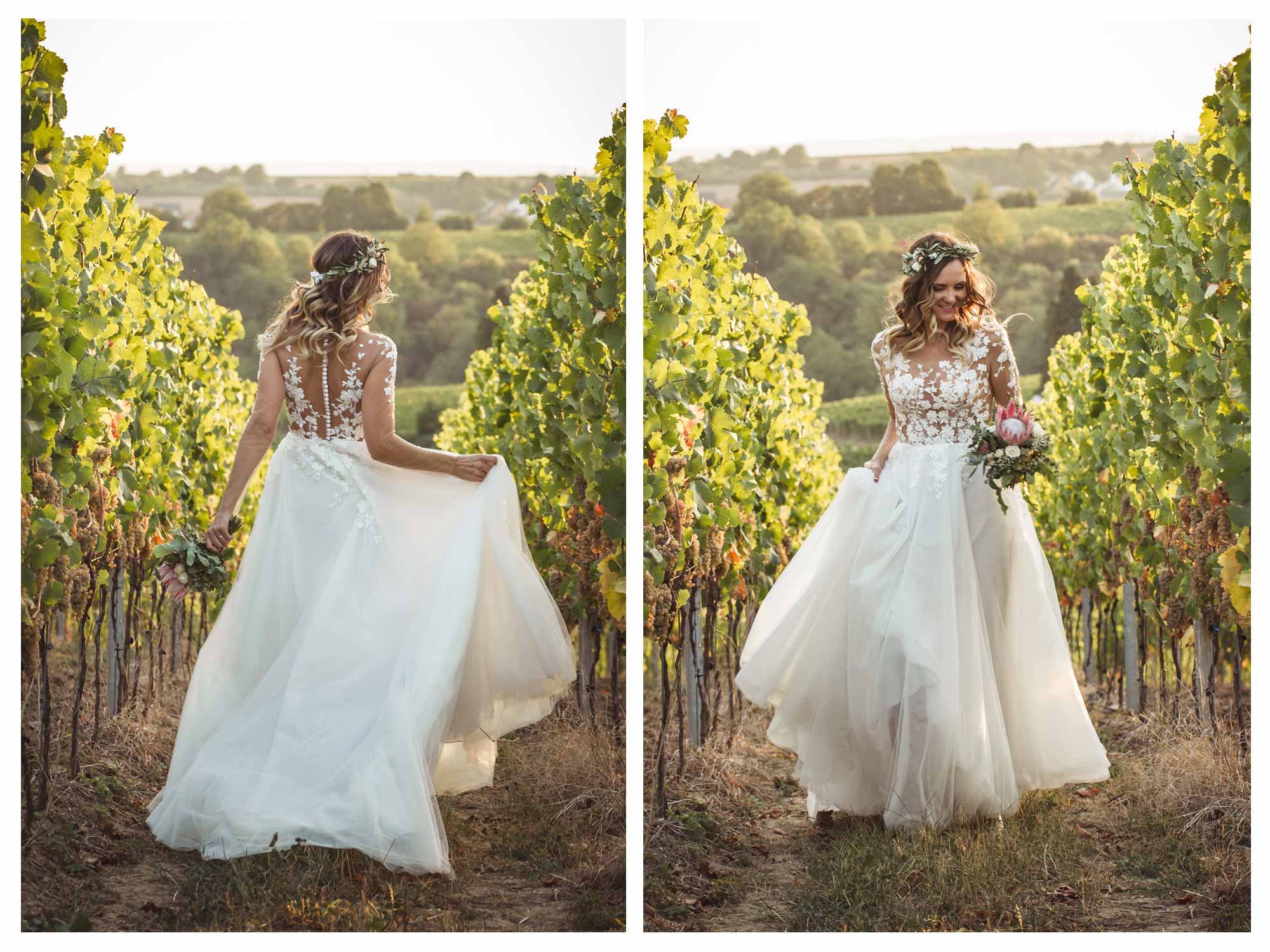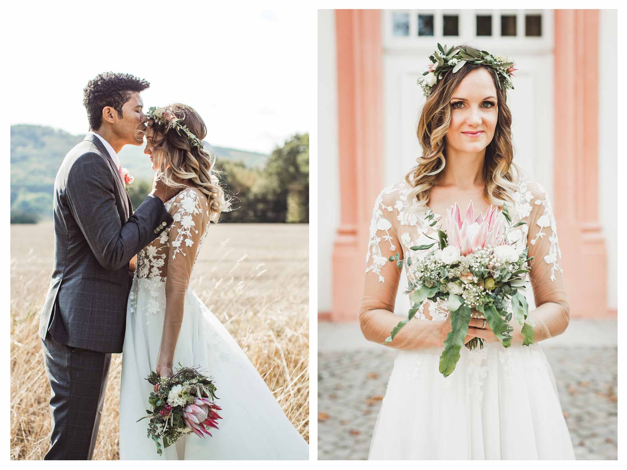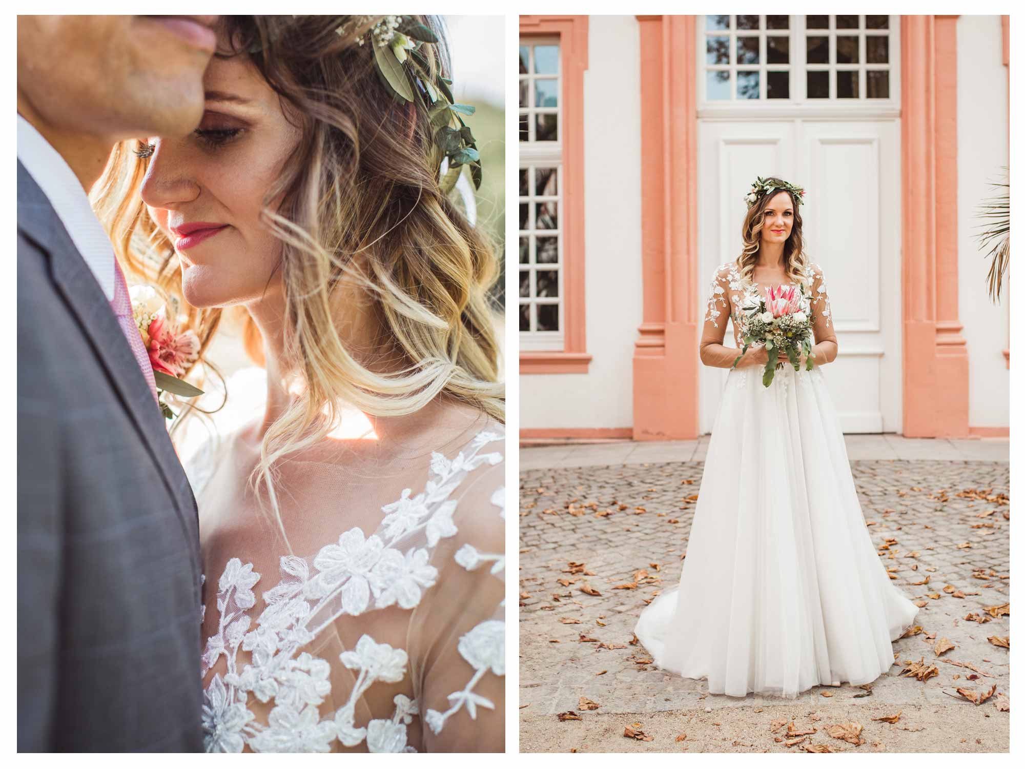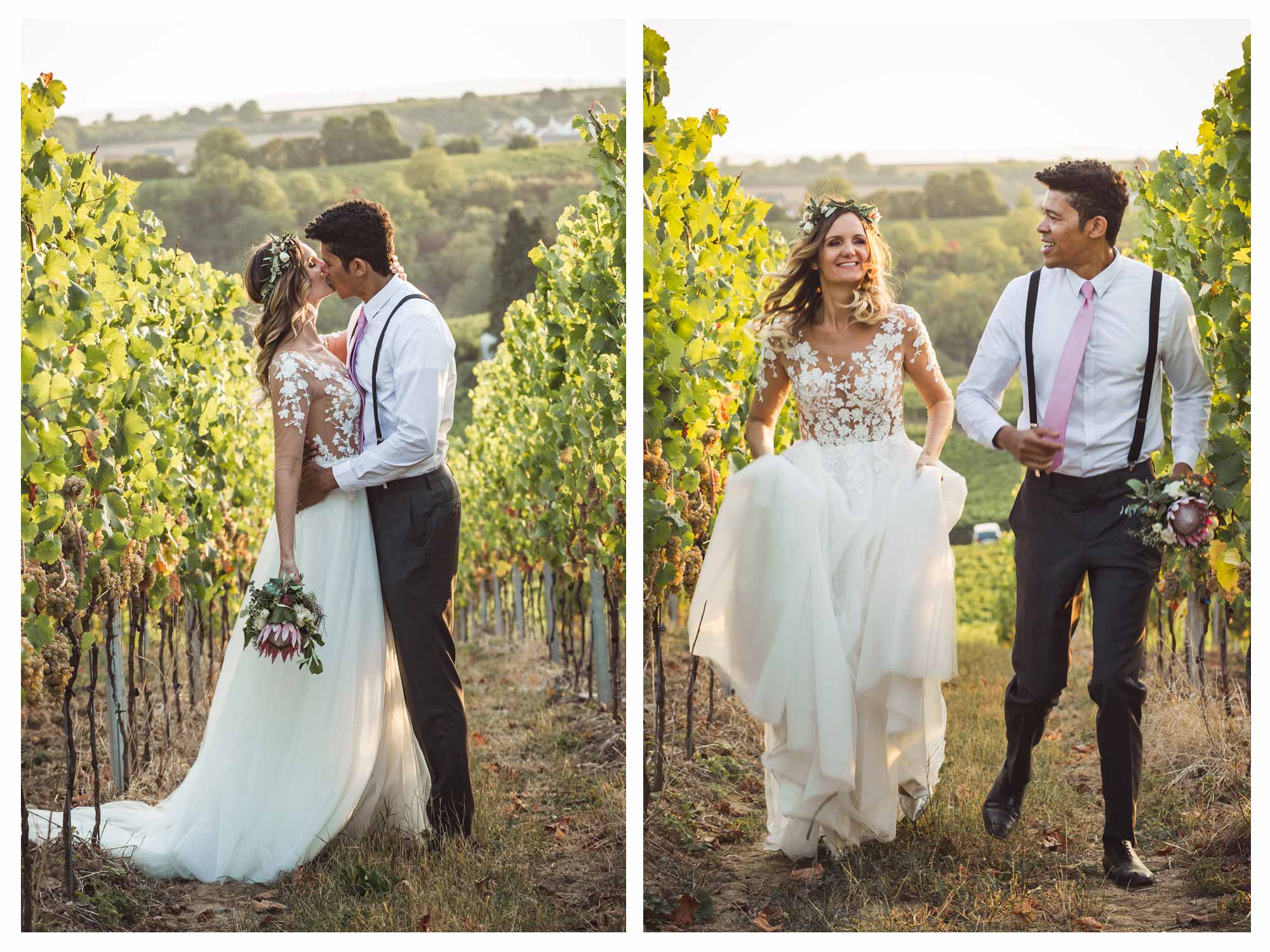 Für das Shooting haben wir uns entschieden im Rettershof in Kelkheim zu starten. Dort hatte ich ja erst vor einigen Wochen eine Hochzeit begleitet. Danach ging es weiter Richtung Wiesbaden. Unterwegs noch einige Fotos in den Streuobst-Wiesen. In Wiesbaden konnten wir im wunderschönen Garten vom Biebricher Schloss einige wundervolle Fotos machen. Zum Sonnenuntergang hin sind wir dann noch in die Weinberge im Rheingau in der Nähe vom Restaurant Baiken in Eltville. Die Landschaft dort ist einfach perfekt im Licht der untergehenden Sonne.