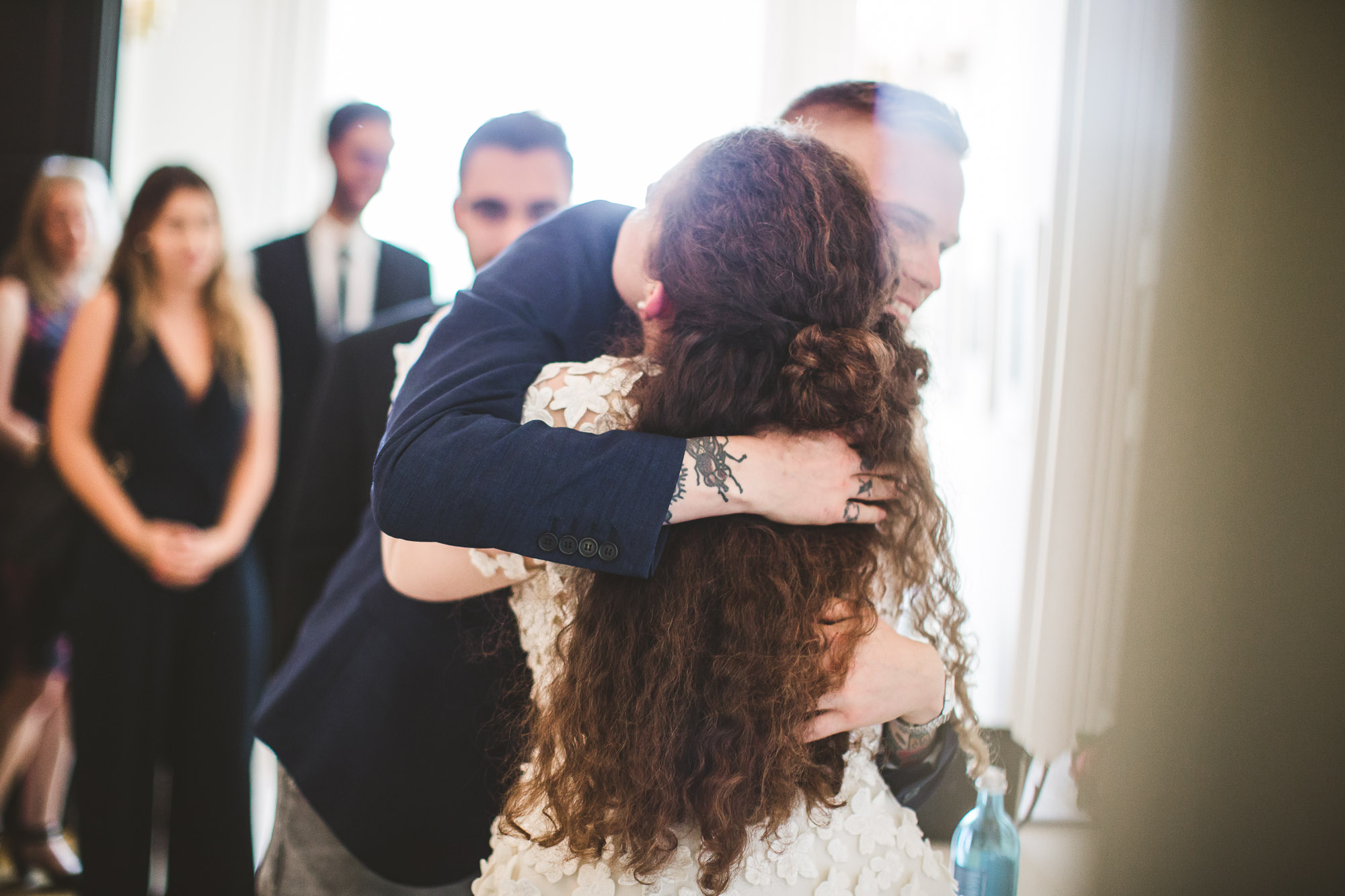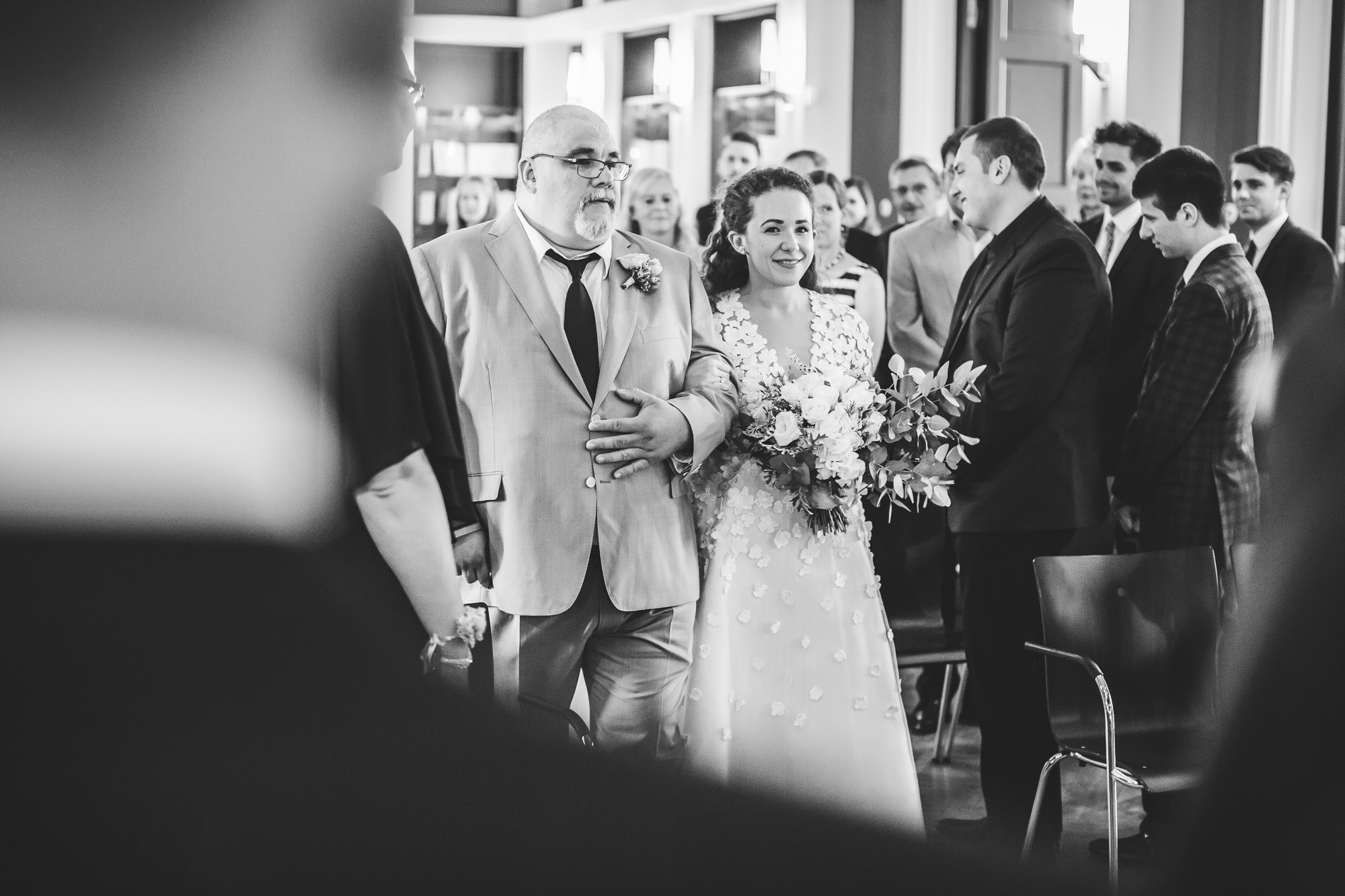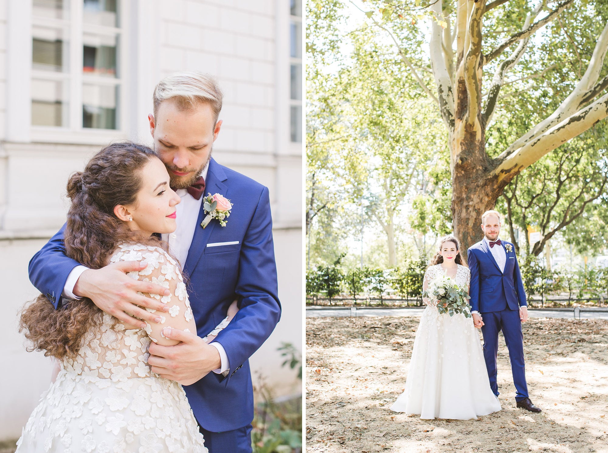 Gestartet haben wir den Tag mit dem Getting Ready welches im Fleming’s Hotel gleich nebenan stattgefunden hat. Nach dem First Look konnten wir bereits einige Brautpaar-Fotos im angrenzenden Park machen. Anschließend gab es einen kleinen Empfang für die Gäste, bevor es für die Freie Trauung in den Saal ins Literaturhaus ging.. Ein wunderschöner Saal der mit tollen Farben beeindruckt.
