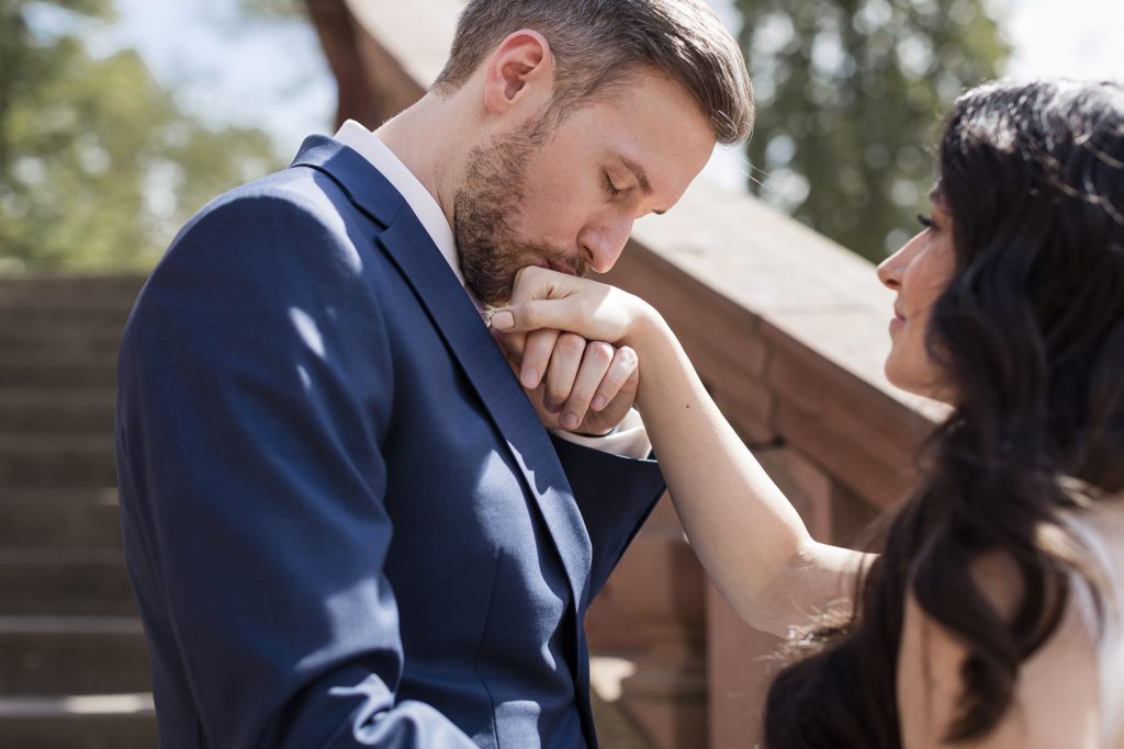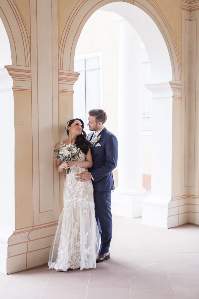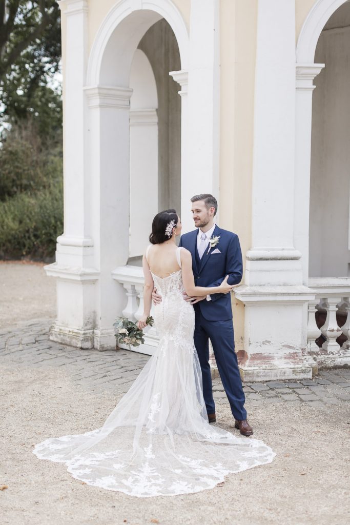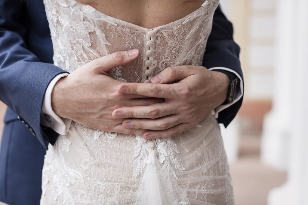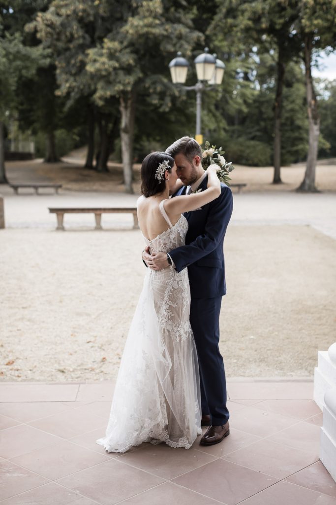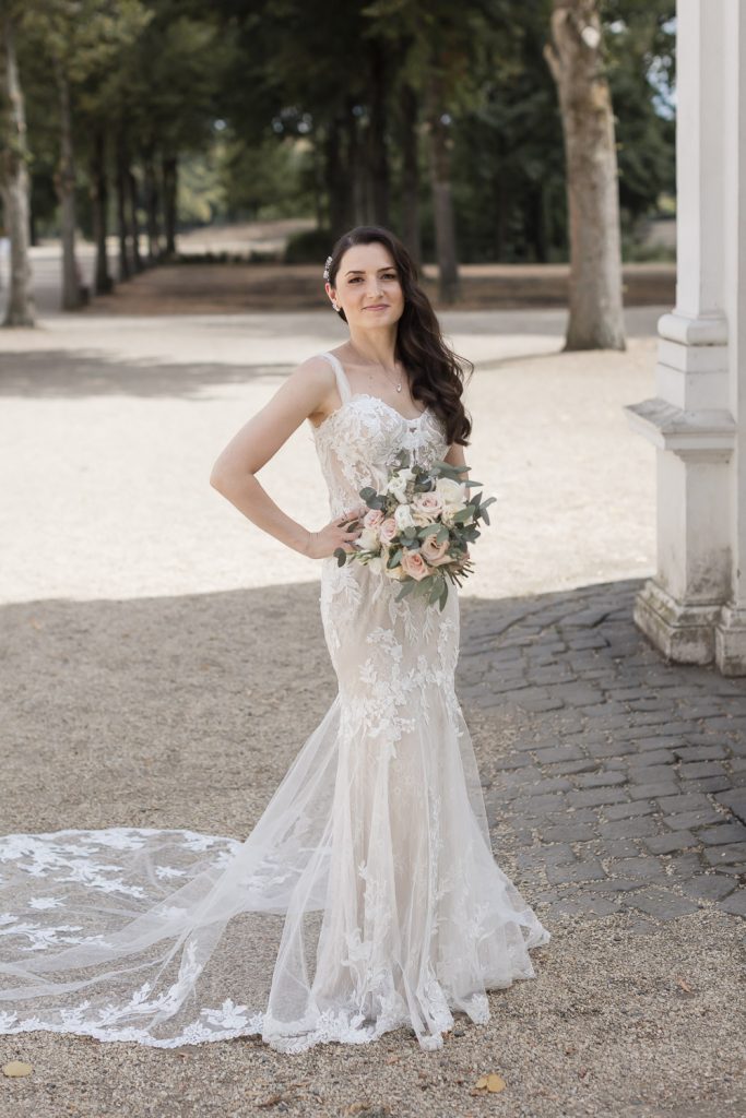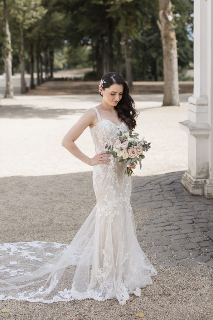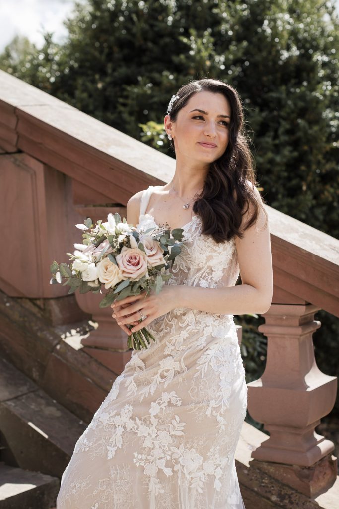 Der Tag begann mit dem First Look in privater Zweisamkeiten im idyllischen Schlossgarten. Hier konnten sich das Brautpaar in entspannter Atmosphäre das erste mal sehen. Die grüne Oase vor dem historischen Schloss bot eine traumhafte Kulisse für erste Fotos – liebevolle Blicke und die Vorfreude auf den großen Moment waren hier schon deutlich spürbar.