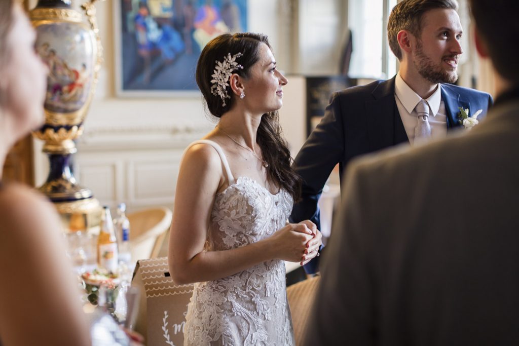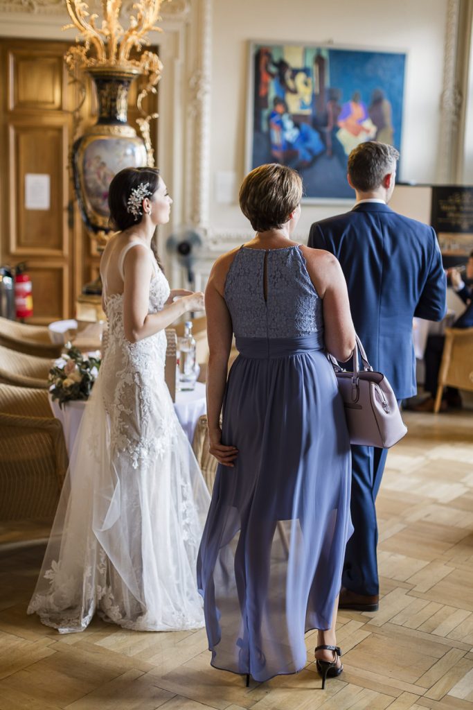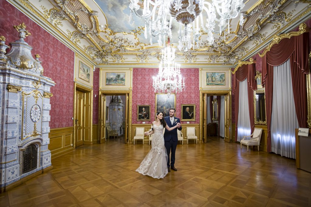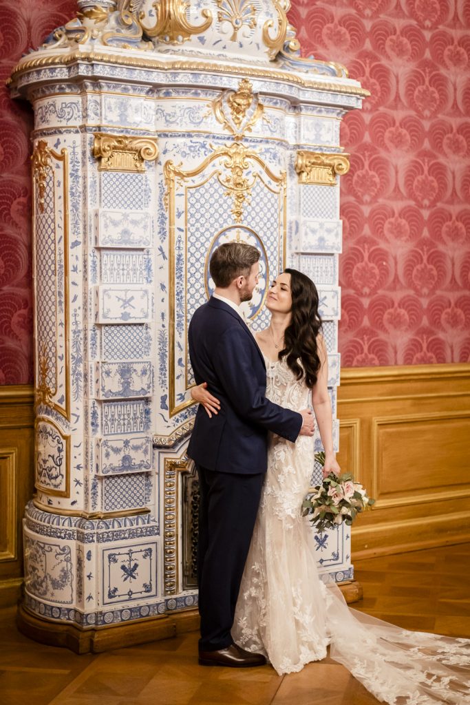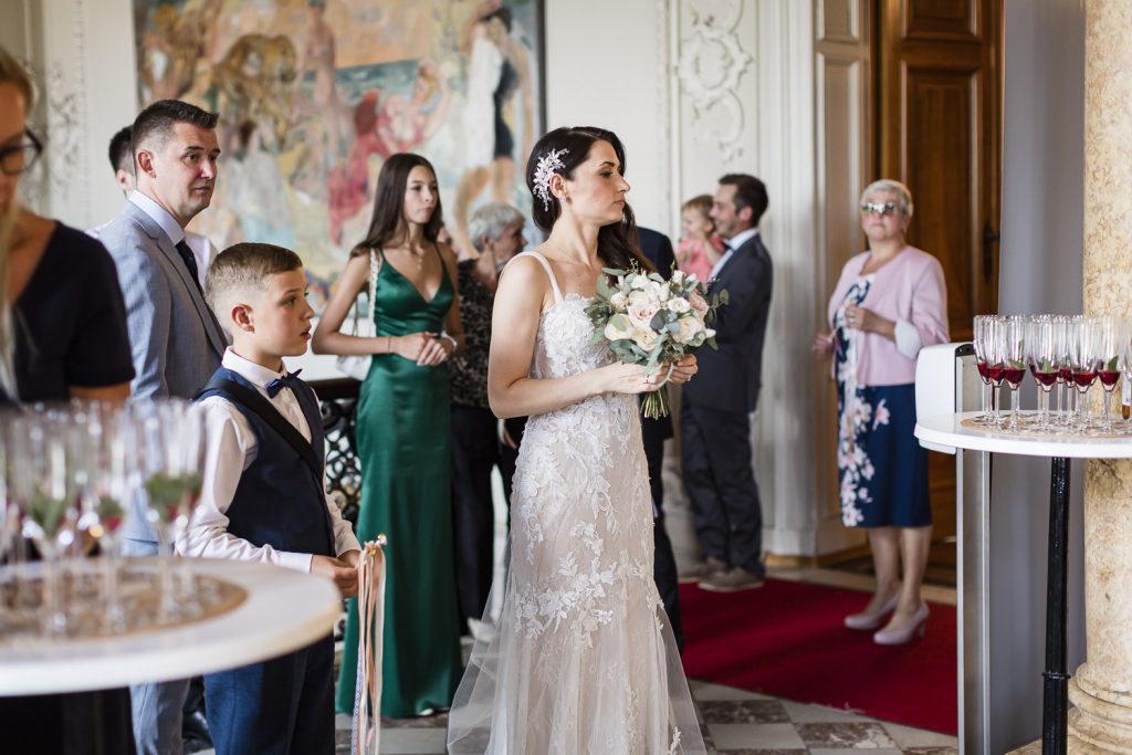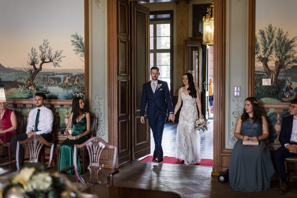 Nach dem lockeren Kennenlernen ging es weiter zur standesamtlichen Trauung im prunkvollen Saal des Schlosses. Das Ambiente war einfach magisch: barocke Architektur, elegante Dekorationen und die festliche Stimmung machten diesen Moment zu etwas ganz Besonderem.