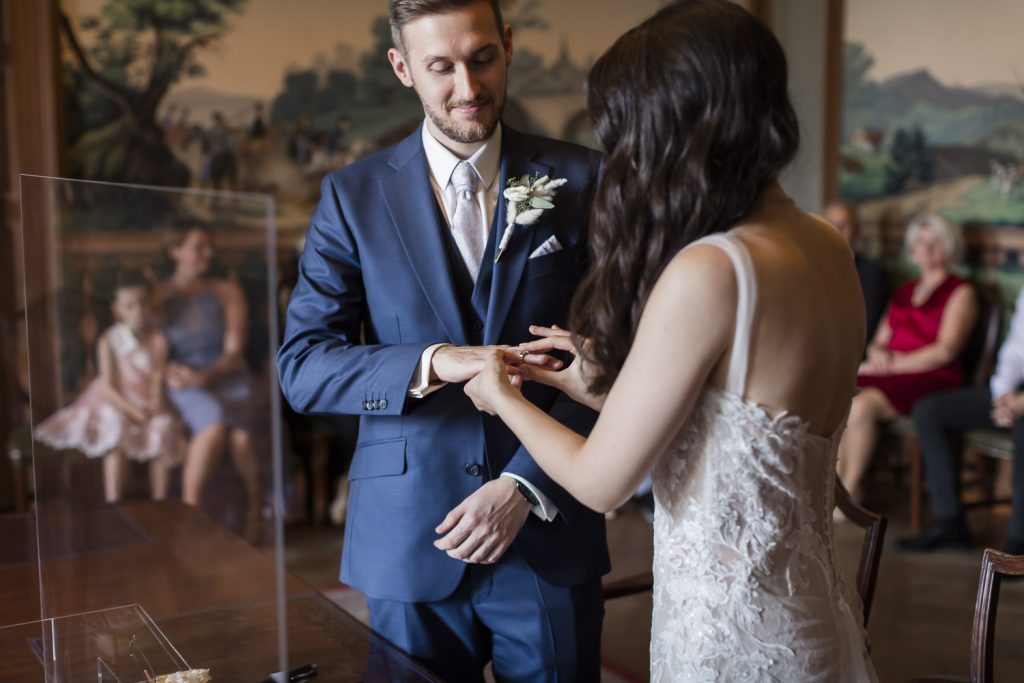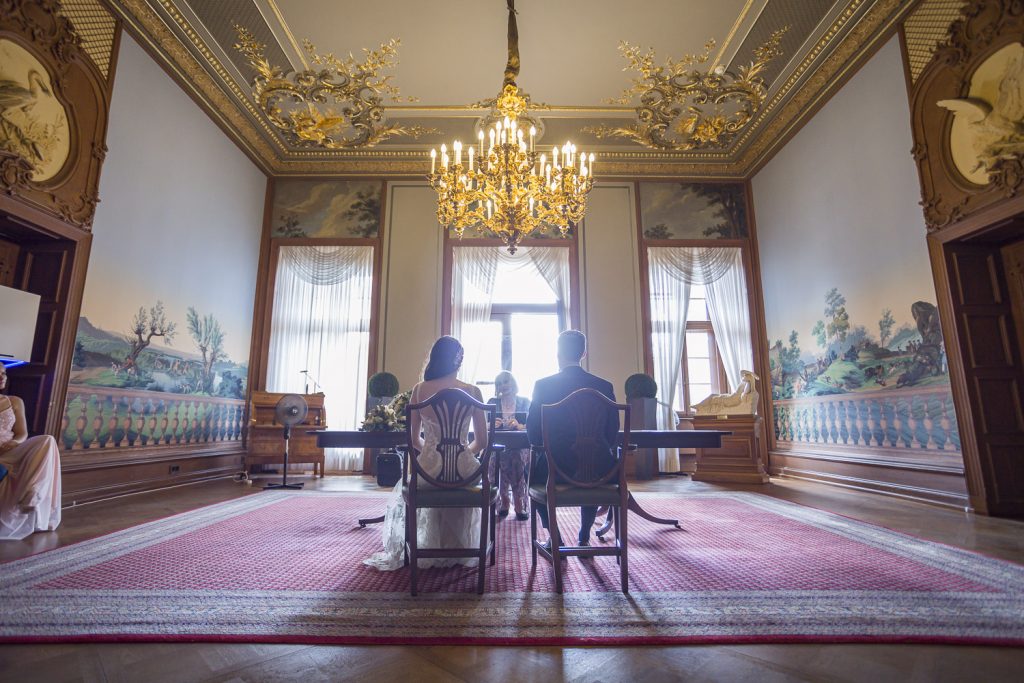 Die standesamtliche Trauung im eleganten Saal des Schlosses